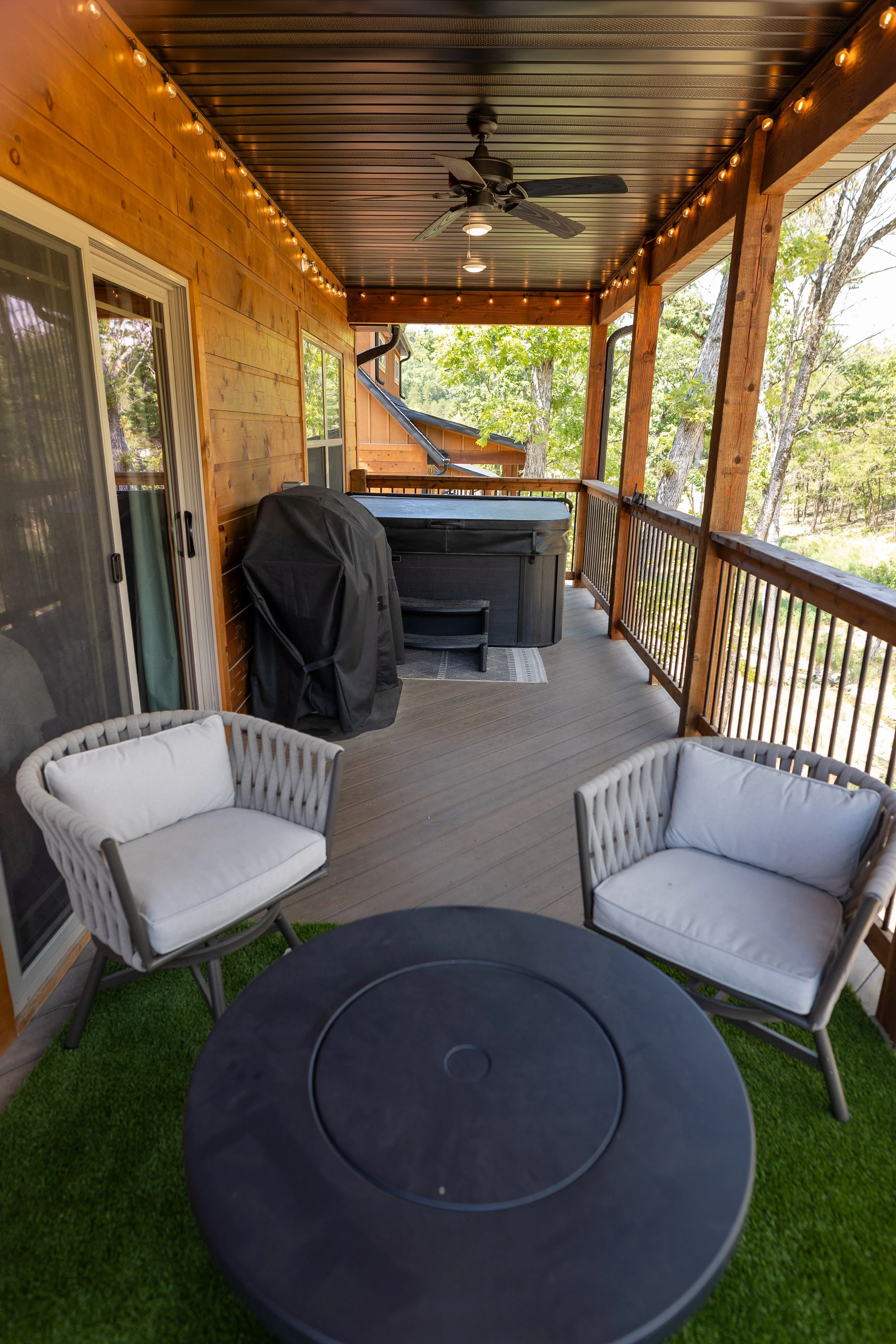 The back deck is situated beautifully with comfortable outdoor furniture, a grill, outdoor dining, and your own private hot tub.